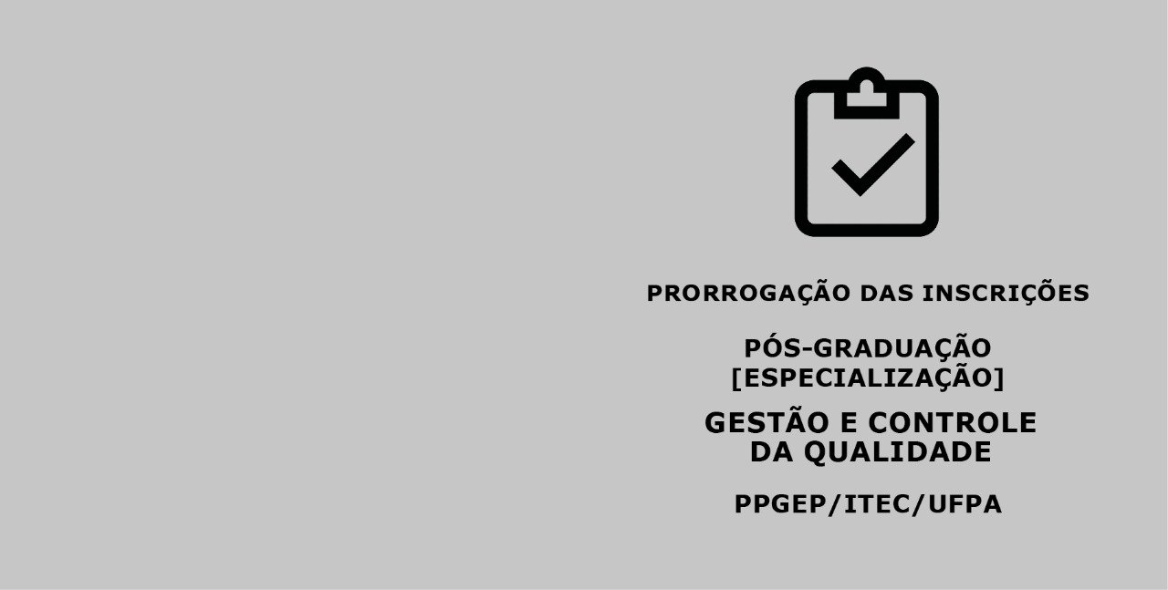 Inscrições prorrogadas para o Curso de Especialização em Gestão e Controle da Qualidade – PPGEP / ITEC/ UFPA 2022
