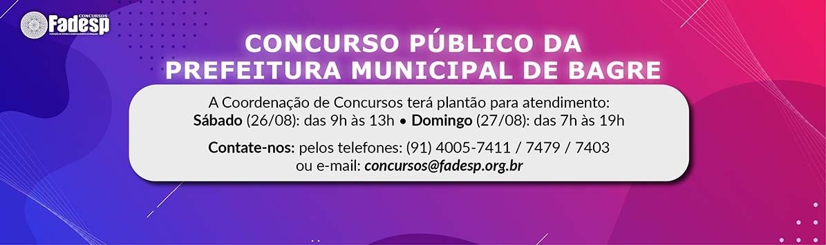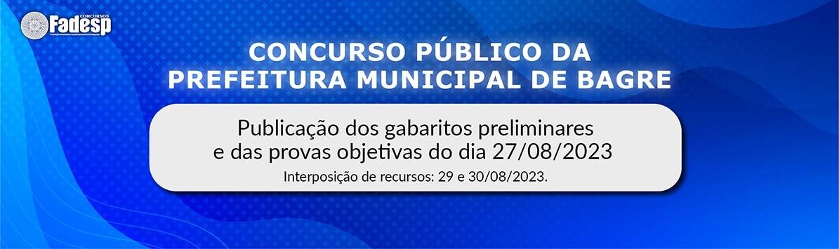 Concurso Público de Bagre: gabarito preliminar da prova de domingo, 27/08.