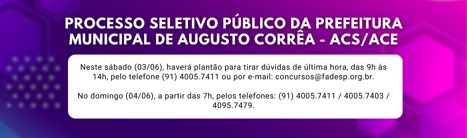 PLANTÃO PARA O PROCESSO SELETIVO PÚBLICO DA PREFEITURA MUNICIPAL DE AUGUSTO CORRÊA – ACS/ACE
