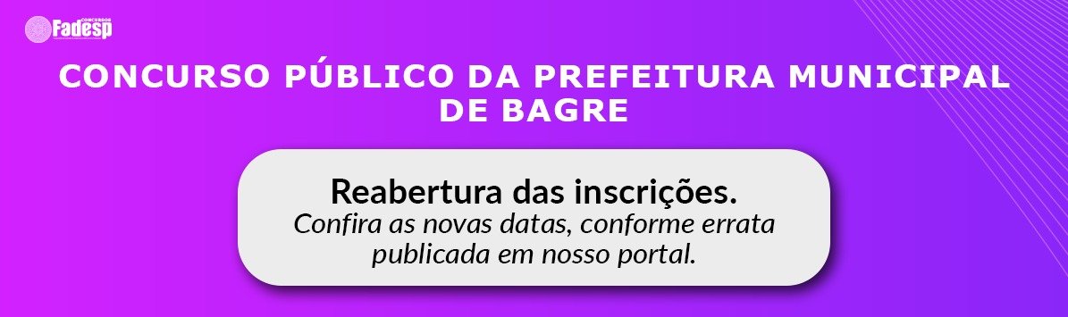 As inscrições para o Concurso da Prefeitura Municipal de Bagre foram reabertas!