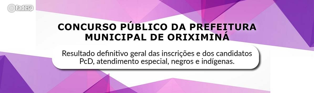 Resultado definitivo de candidatos com inscrições deferidas do Concurso Público de Oriximiná